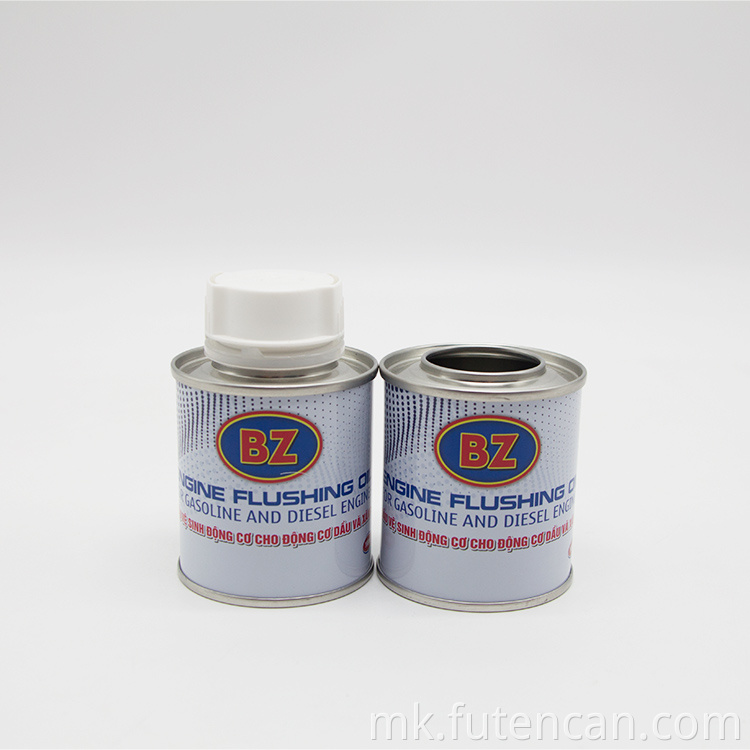 Големината на лименката за моторно масло од 100 ml е 56 * 62 мм, се користи на боја, моторно масло, лубрикант, течност за сопирачките и хемикалии, дупката е искористена пластична капа од 32 мм. Нашиот MOQ е 3000 парчиња со печатење во боја CMYK 4, печатење во боја пантон. Можеме да произведеме тркалезна лимена конзерва со различна големина. Резервоарот за масло за сопирачките на автомобилот има многу добар ефект. Точката на замрзнување на резервоарот за масло за сопирачките на автомобилот е многу ниска и има добра флуидност при ниска температура; точката на вриење на резервоарот за масло за сопирачките на автомобилот е исклучително висока и нема да има отпор на воздухот на висока температура. Кога ќе се користи резервоарот за масло за сопирачките на автомобилот, ќе се открие дека неговиот квалитет многу малку се менува и нема да предизвика корозија на метал и гума.