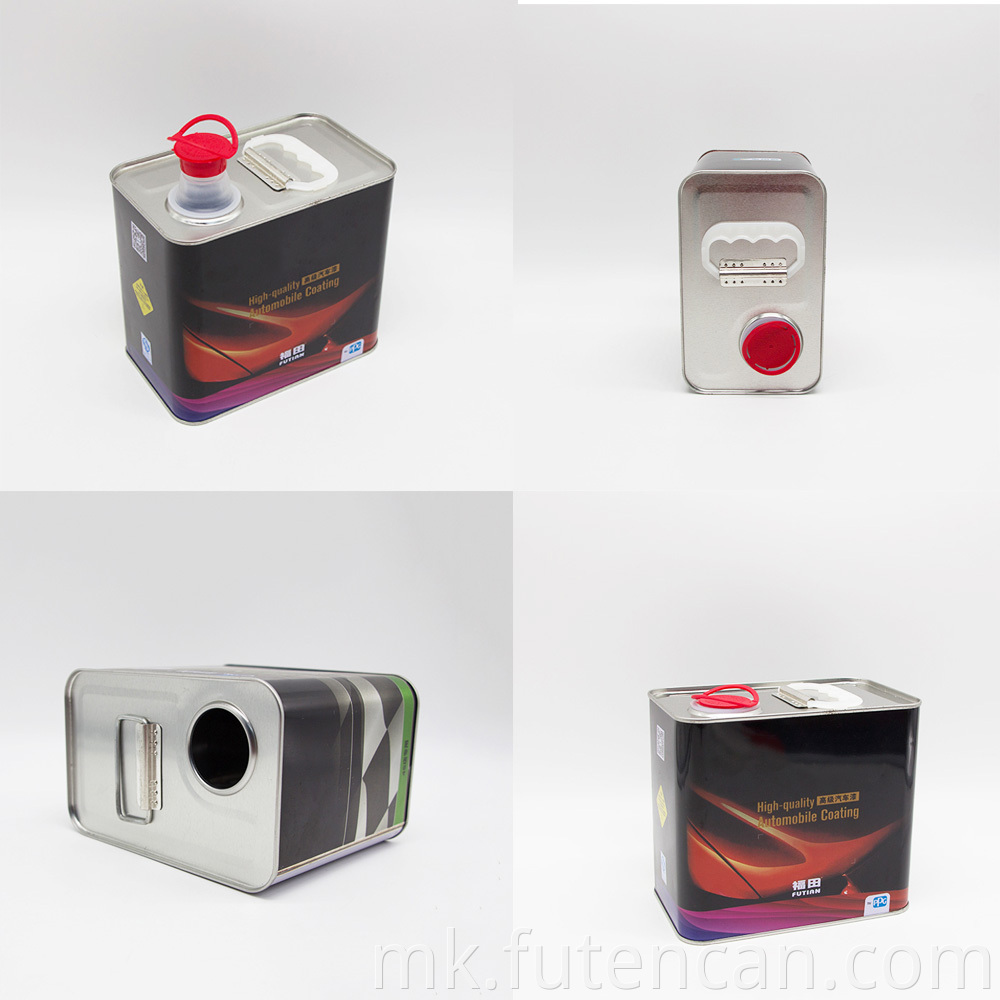 Нашиот производ е конзерва за моторно масло од квадрат од 0,5 литри. Големината е 116*60*100 мм, се користи на боја, моторно масло, лубрикант, течност за сопирачките, а дупката е искористена пластична капа од 42 мм. Пластично заврткано капаче од 42 мм и капак на капакот кој лесно се отвора. Нашиот MOQ е 1000 парчиња со печатење во боја CMYK 4, печатење во боја со пантон. Можеме да произведеме квадратна лимена конзерва со различна големина. Во споредба со другите материјали за пакување, лименките имаат очигледни предности. Одлични бариерни својства: лименките имаат подобри својства на бариера од кој било друг материјал, со добри својства на бариера на гас, отпорност на влага, светло засенчување и задржување на мирисот и сигурно запечатување, што може сигурно да го заштити производот.
